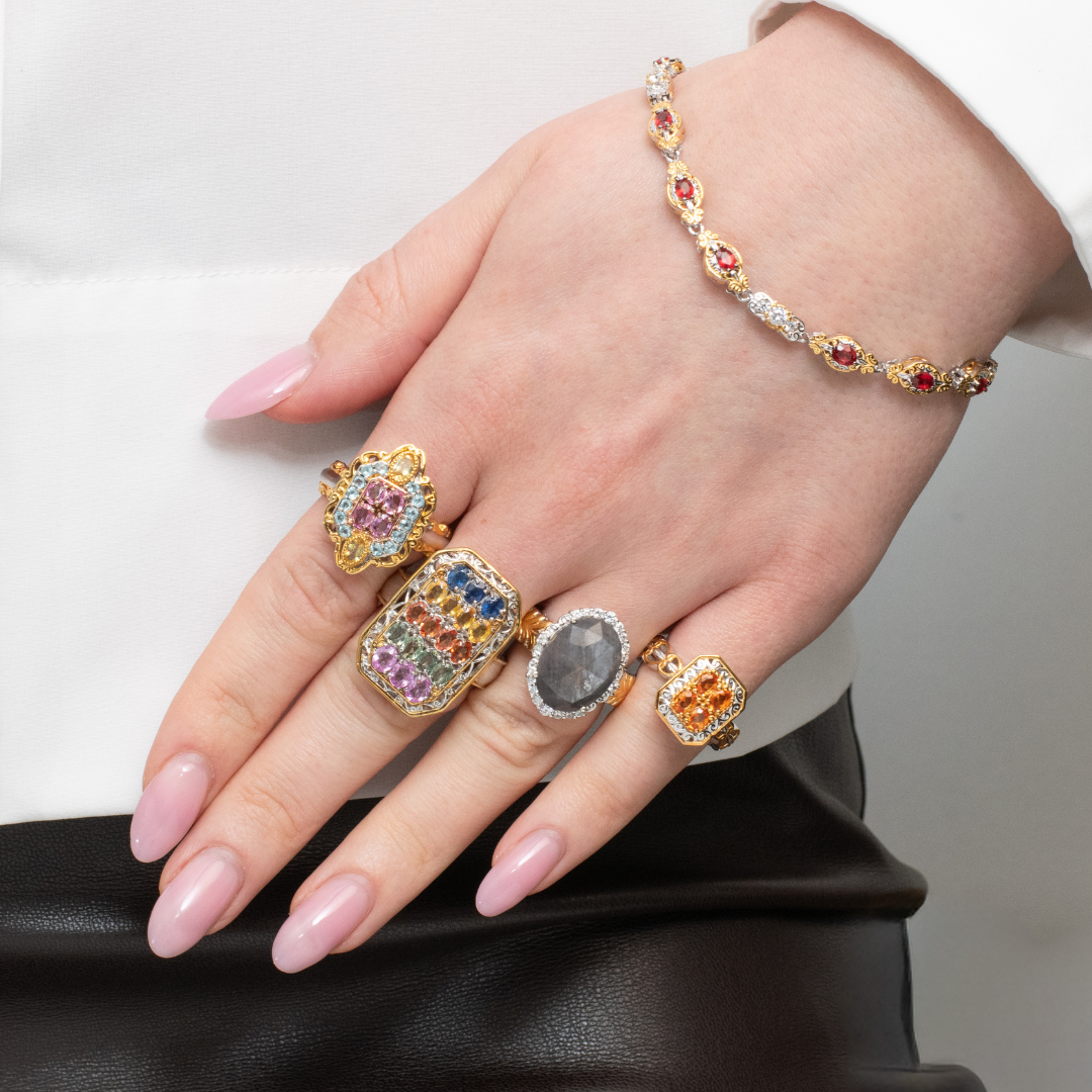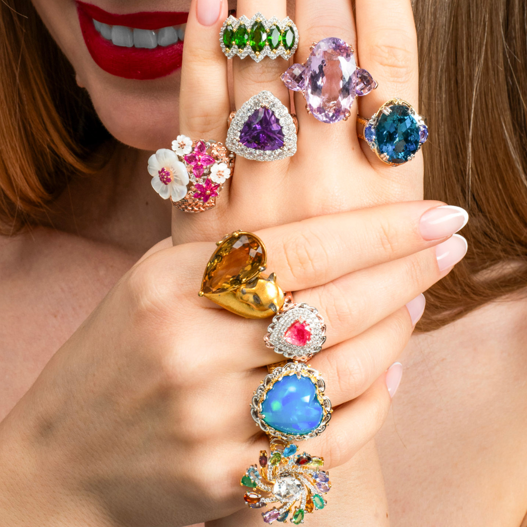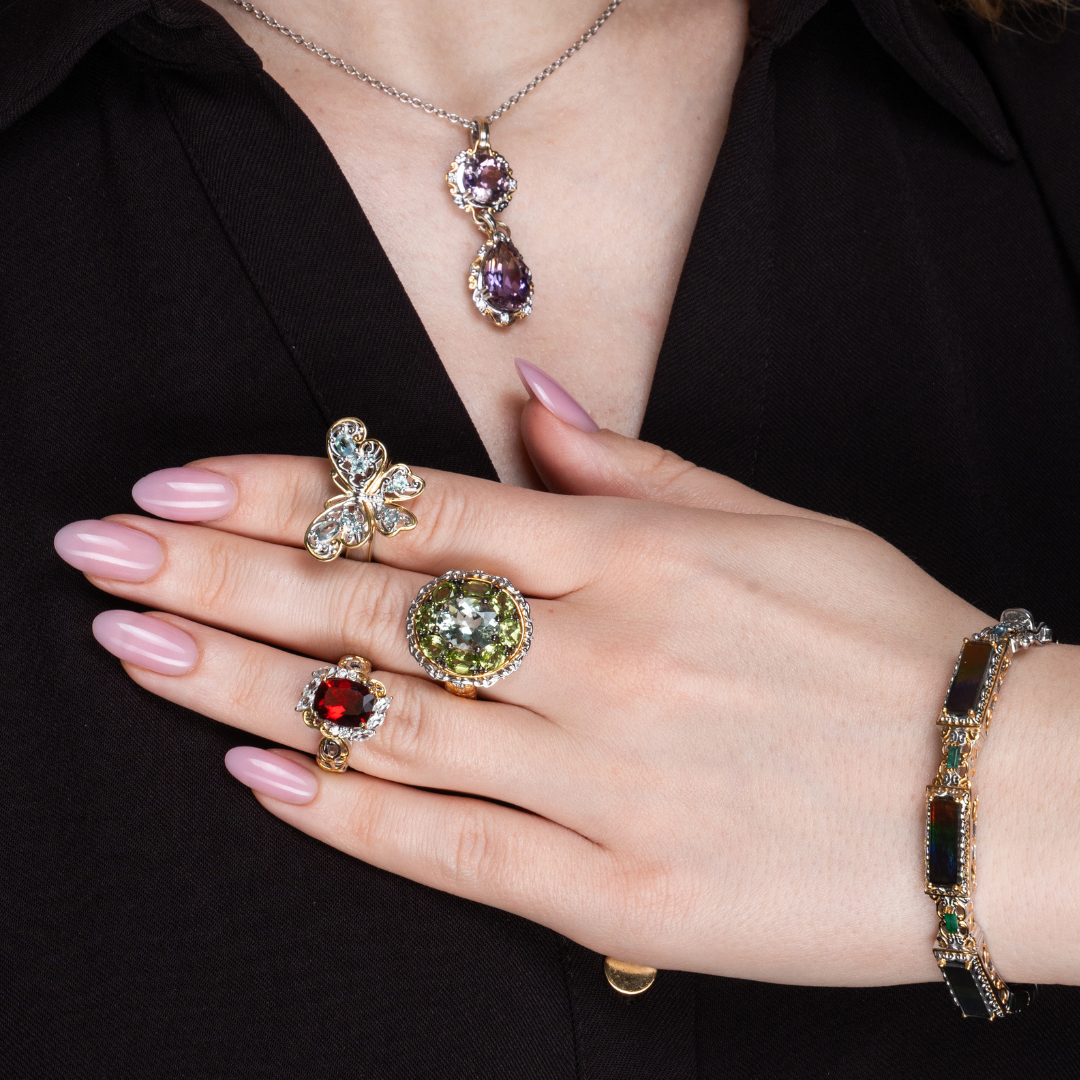 Gems en Vogue’s award winning designs bring you inspired jewelry from notable art movements in history. Our distinctive masterpieces are set in our proprietary formula of sterling palladium alloy with 18K gold hand embraced accents. The collection features intricately designed pieces with premium exotic precious and semi-precious gemstones sourced worldwide.