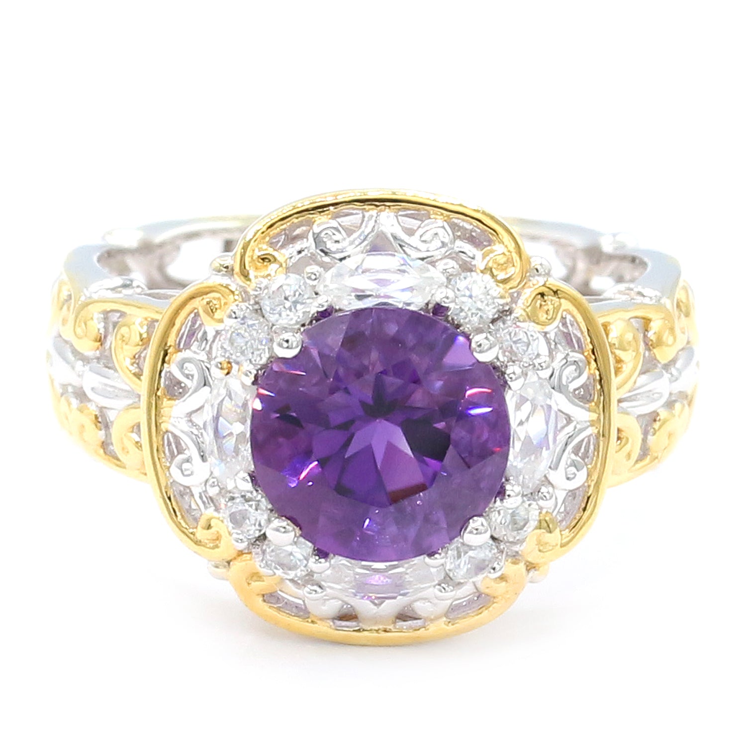 Gems en Vogue 18K Palladium Silver 8.05ctw Rio Grande Amethyst & White Zircon Ring
