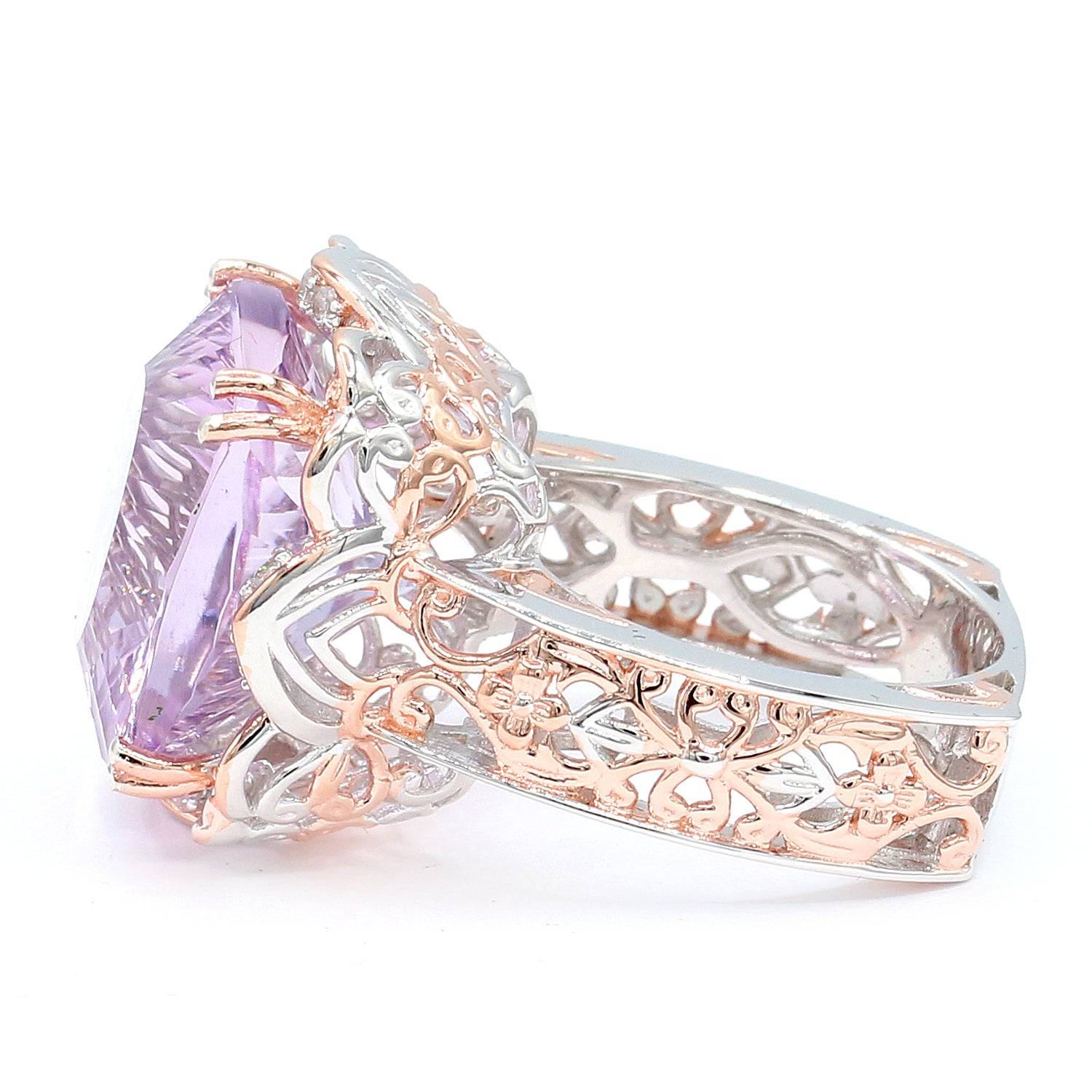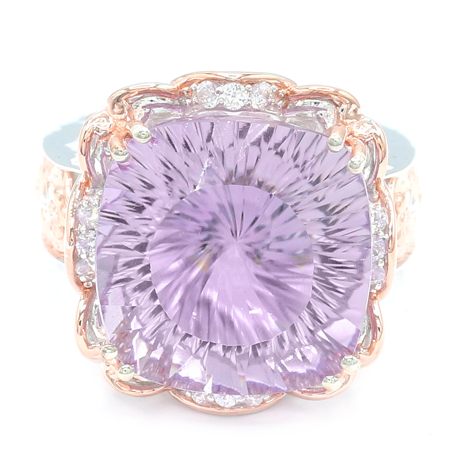 Gems en Vogue 18K Palladium Silver 4.03ctw Cushion Pink Amethyst & White Zircon Ring