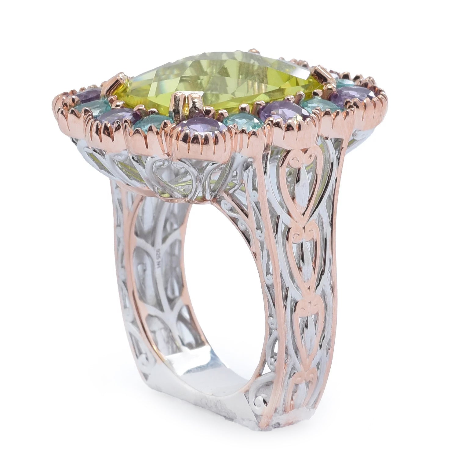 Couture Gems One-of-a-Kind 24K Palladium Silver 5.38ctw Peach Morganite & Mint Tourmaline Ring