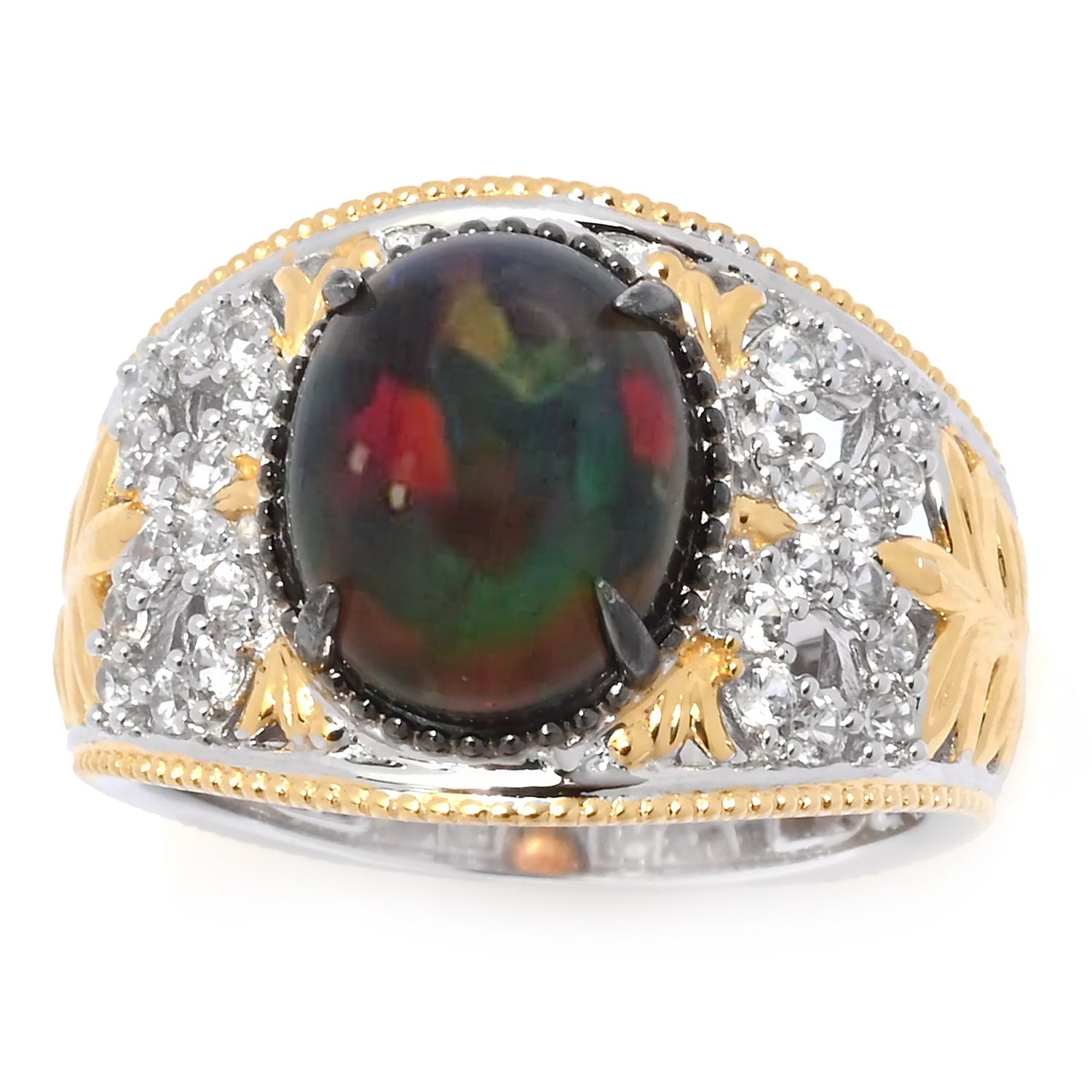 Gems en Vogue One-of-a-Kind 24K Palladium Silver Ethiopian Opal, Blue Topaz & Chrome Diopside Peacock Ring