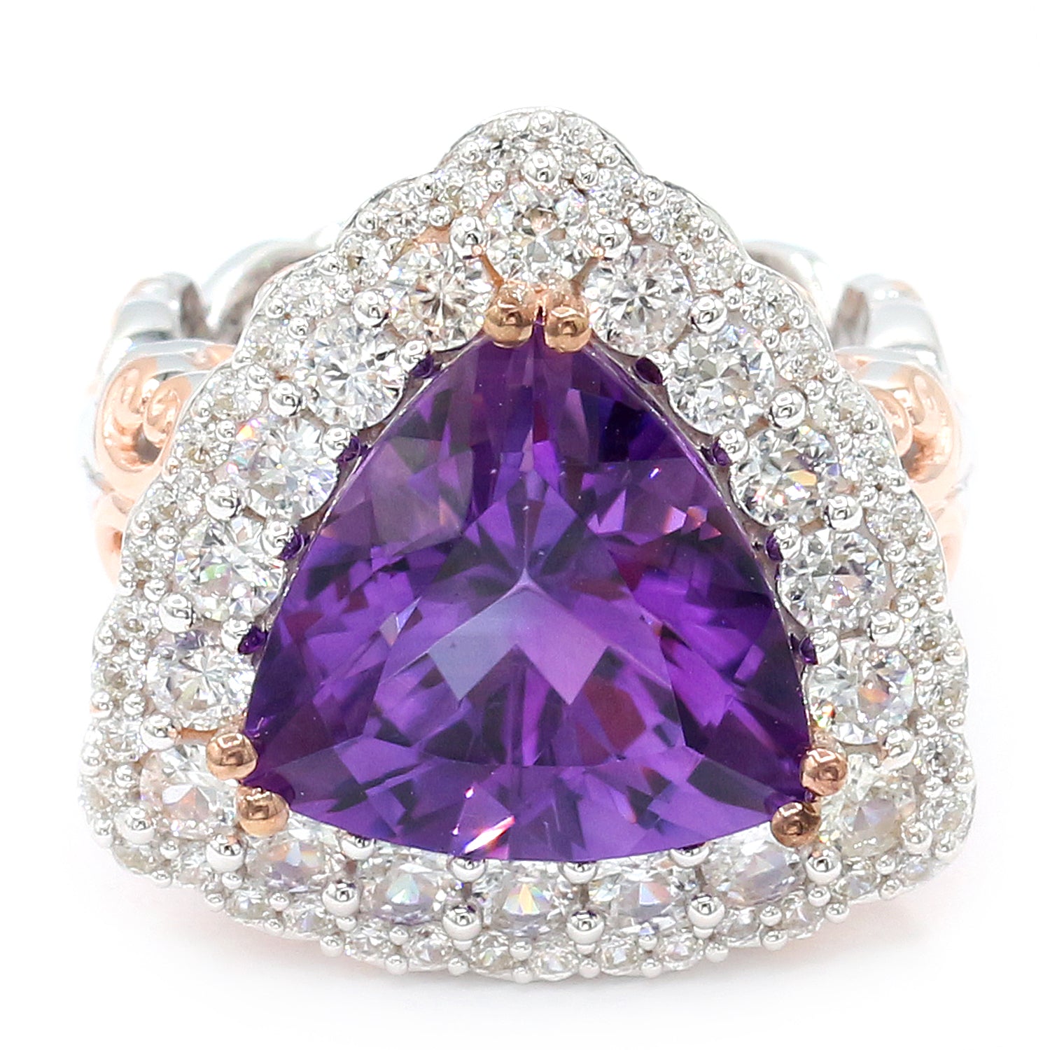 Gems en Vogue 18K Palladium Silver 4.76ctw Trillion Rio Grande Amethyst & White Zircon Ring