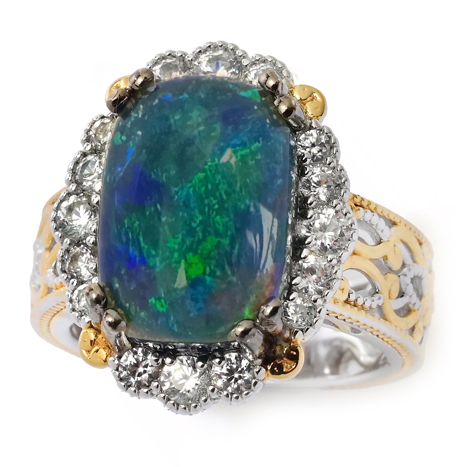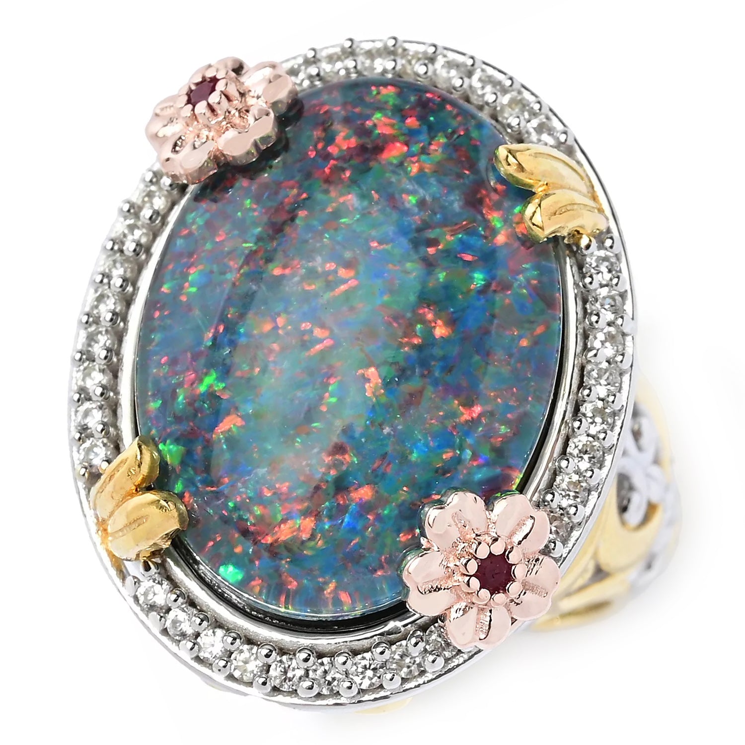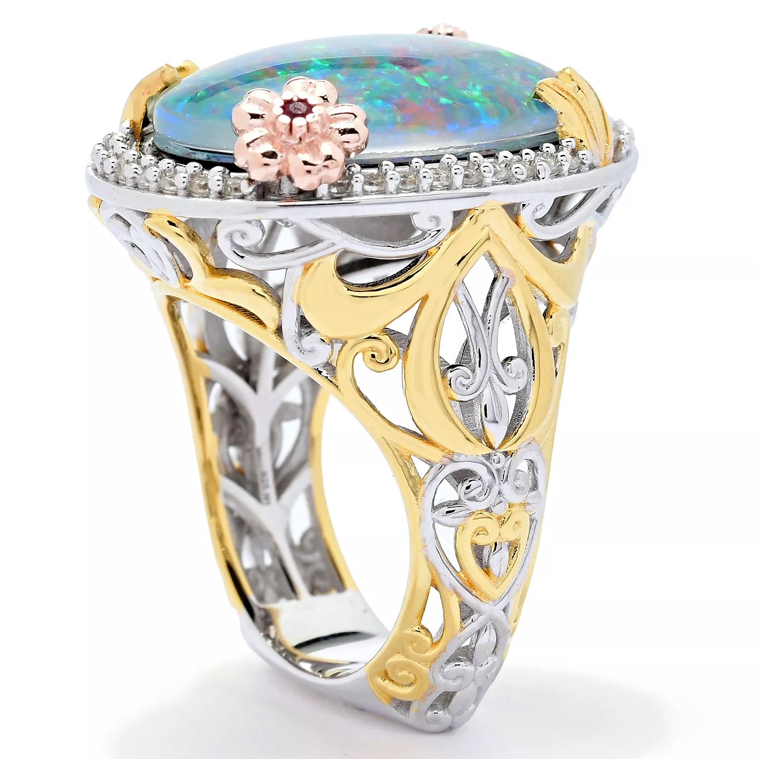 Gems en Vogue One-of-a-kind 24K Palladium Silver Australian Aurora Opal Triplet & Chrome Diopside Peacock Ring