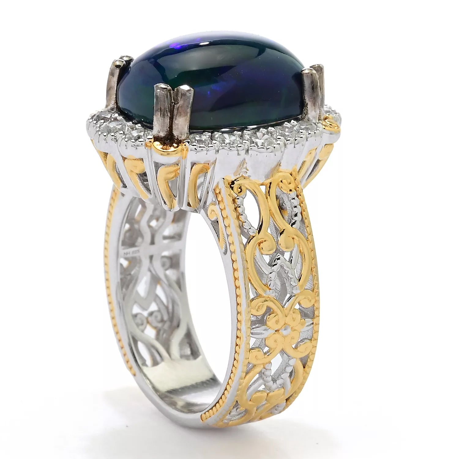 Couture Gems One-of-a-Kind 24K Palladium Silver 13.58ctw Black Ethiopian Opal Ring