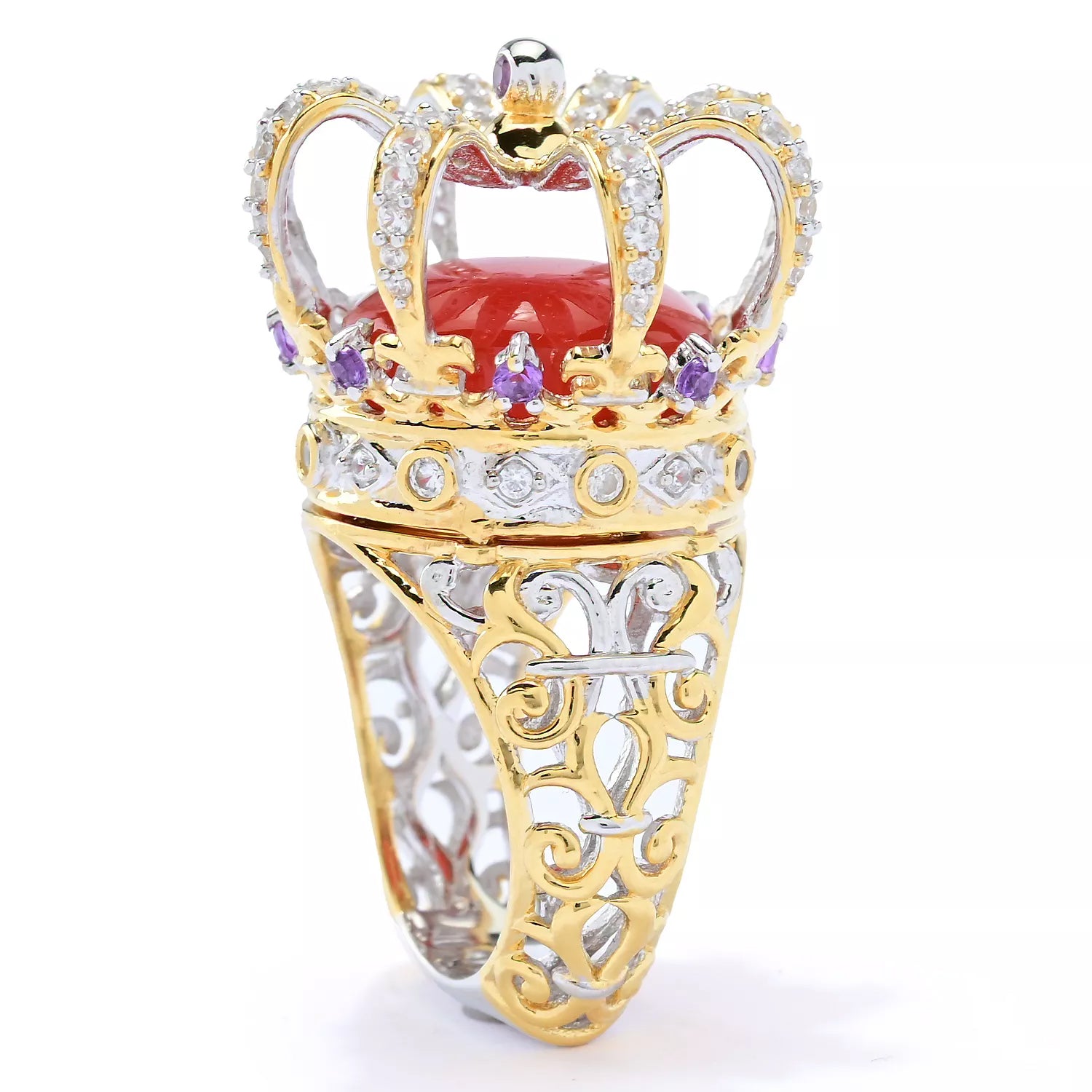 Gems en Vogue One-of-a-Kind 24K Palladium Silver Red & Pink Coral Three Stone Ring