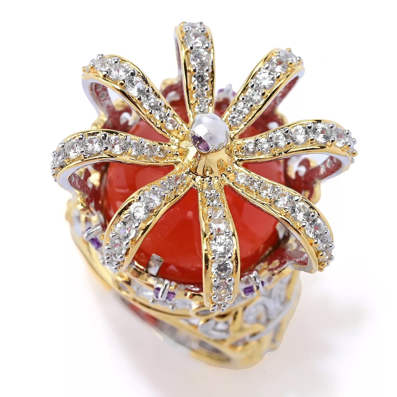 Gems en Vogue Red Coral & Swiss Blue Topaz Ring