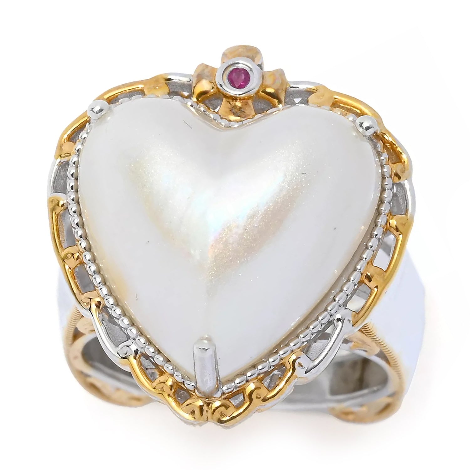 Gems en Vogue 24K Palladium Silver Carved Black Mother-of-Pearl, Garnet & Zircon Heart & Flower Ring