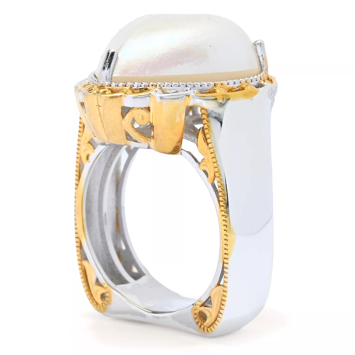 Gems en Vogue 24K Palladium Silver White Mother-of-Pearl Doublet & Swiss Blue Topaz Ring