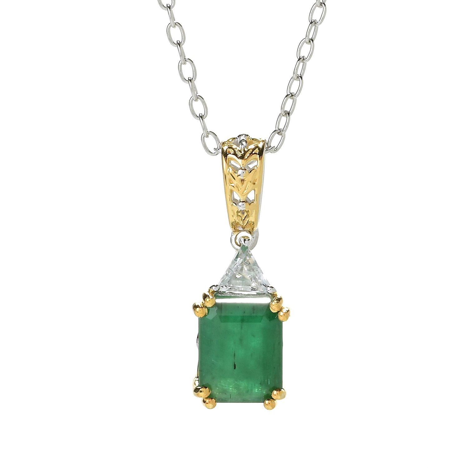 Gems en Vogue 2.48ctw Grizzly Emerald & White Topaz Pendant