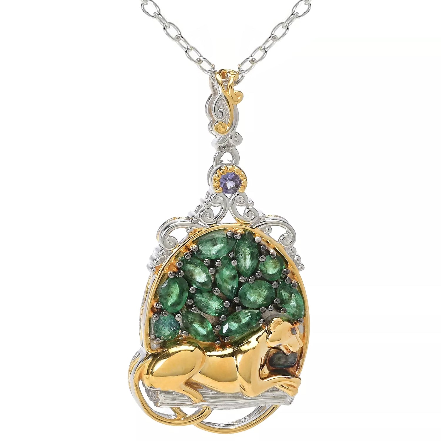 Gems en Vogue 1.68ctw Grizzly Emerald & Tanzanite Panther Pendant