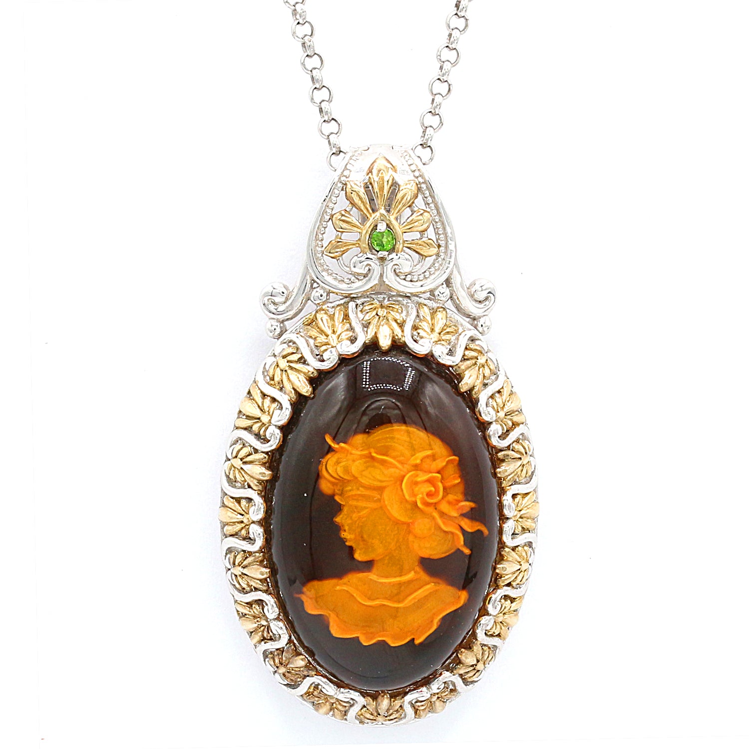 Gems en Vogue Carved Black Amber & Chrome Diopside Lady Pendant