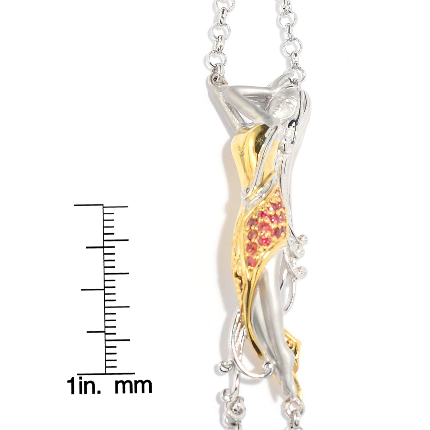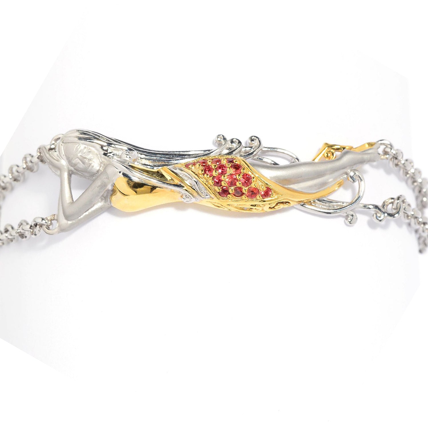 This exquisite Gems En Vogue bracelet features a sculpted lady station design accented by orange sapphire. Crafted of palladium silver with a beautifully-constructed undergallery and 24k yellow gold-embraced detailing this bracelet shines with a highly polished finish.