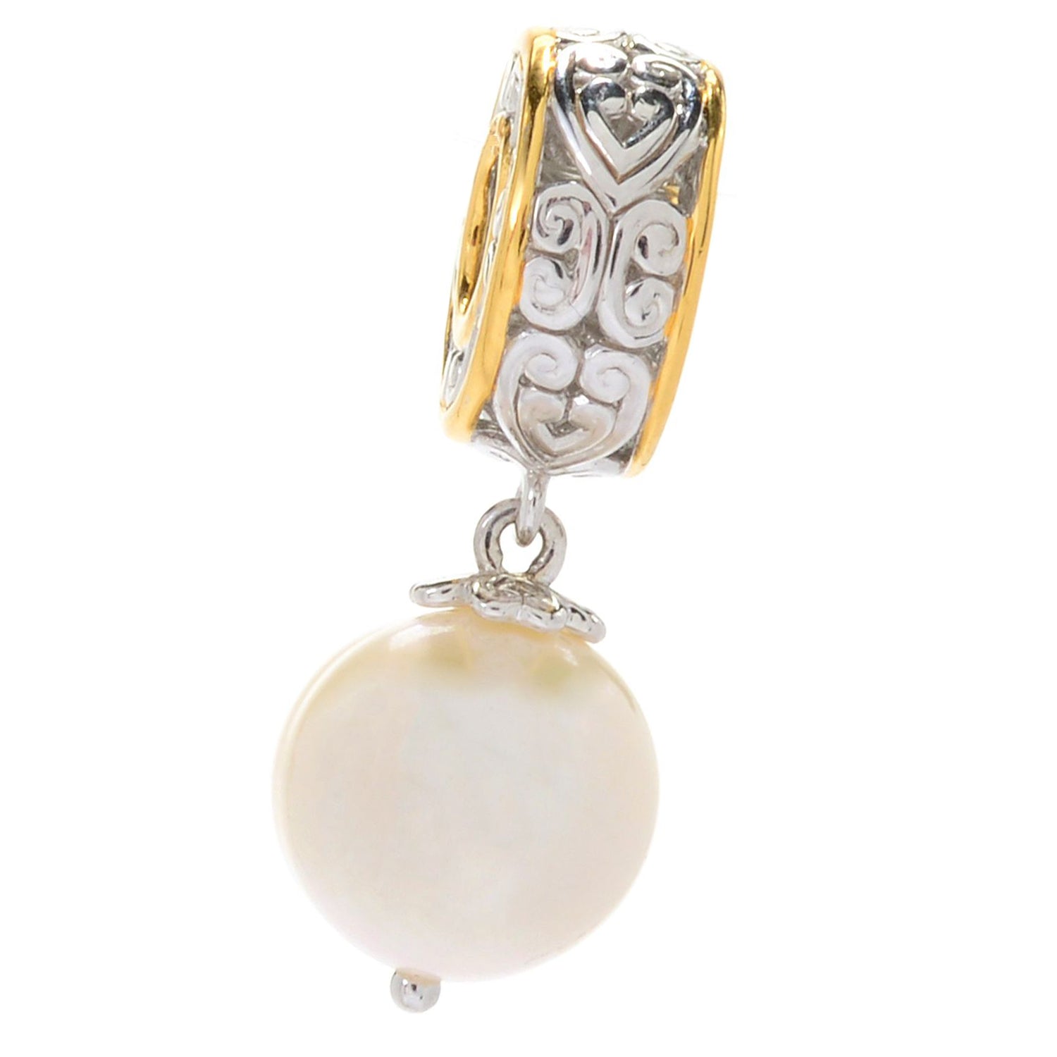 This exquisite Gems en Vogue charm features White Pearl. Crafted of 24K yellow gold embraced sterling silver and palladium, this charm shines with a highly polished finish.