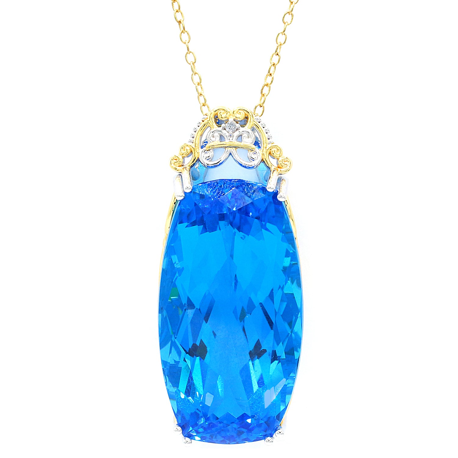 This exquisite Gems en Vogue pendant features Salmon Fluorite accented by White Zircon. Crafted of 24k yellow gold embraced sterling silver and palladium with a beautifully-constructed undergallery this pendant shines with a highly polished finish.