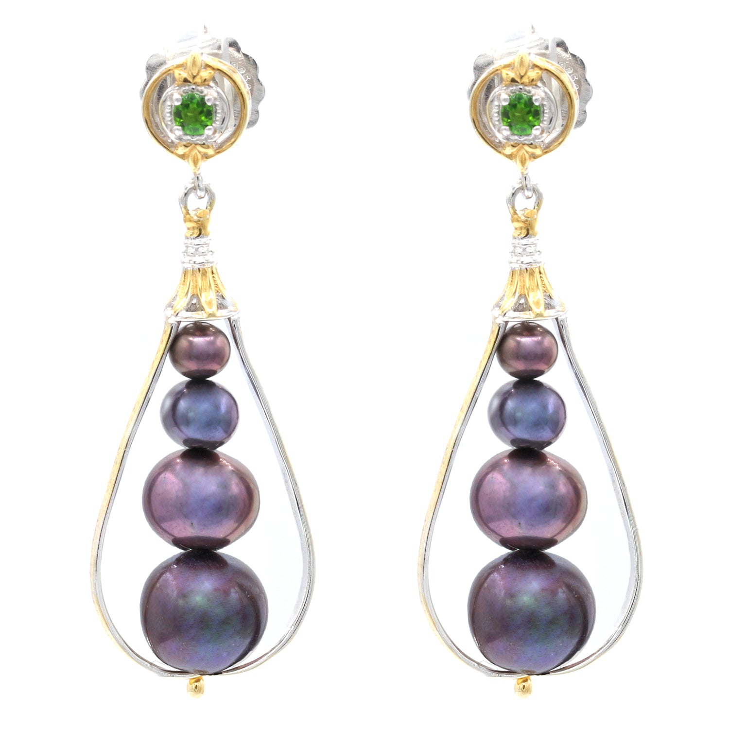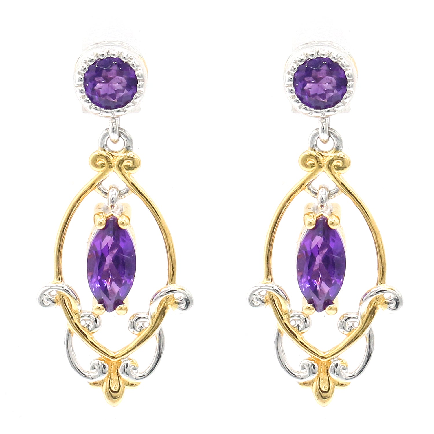 Gems en Vogue 24K Palladium Silver Purple Jade & Amethyst Lady Portrait Overlay Stud Earrings