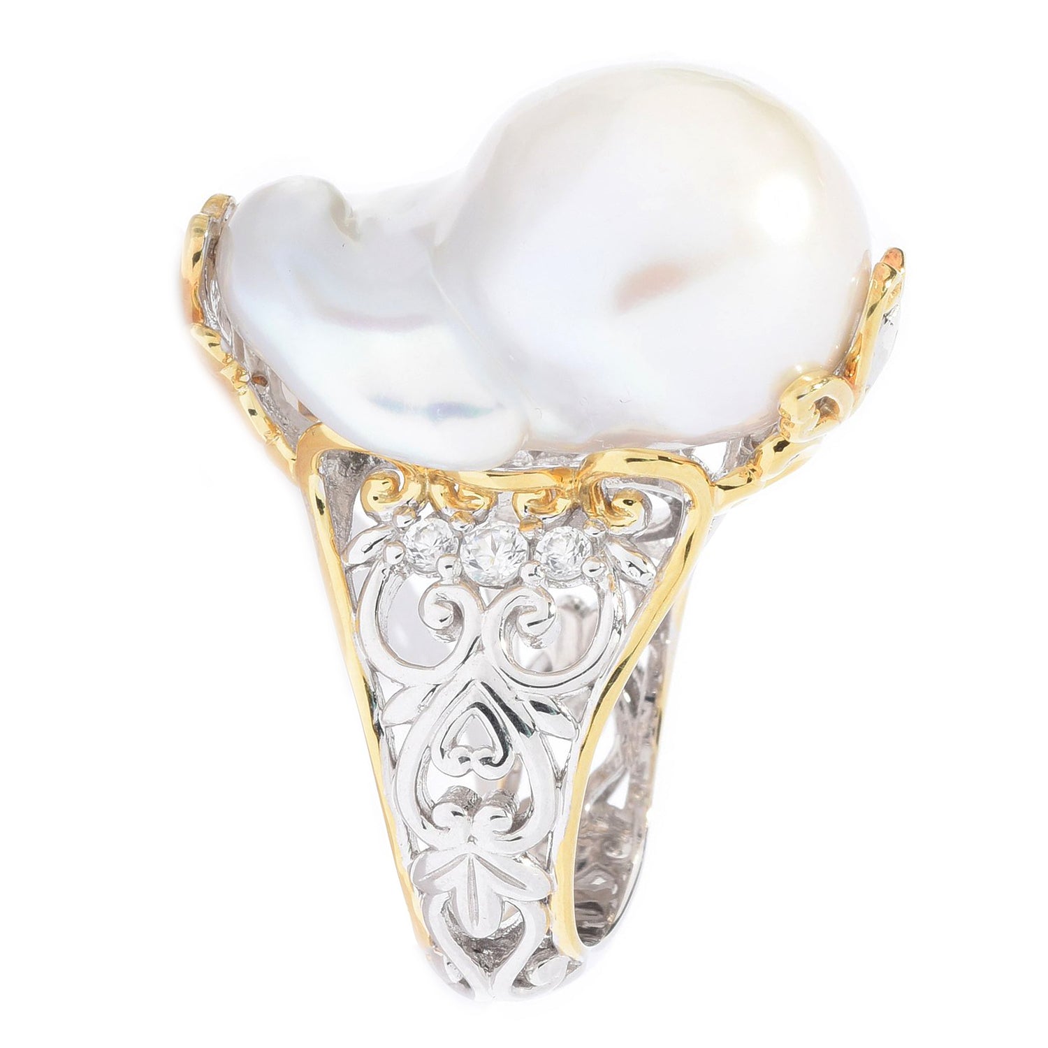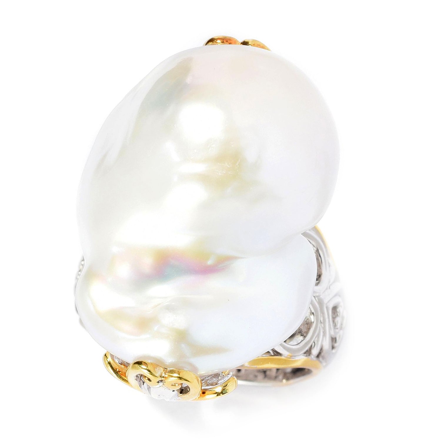Gems en Vogue 24K Palladium Silver White Mother-of-Pearl Doublet & Swiss Blue Topaz Ring