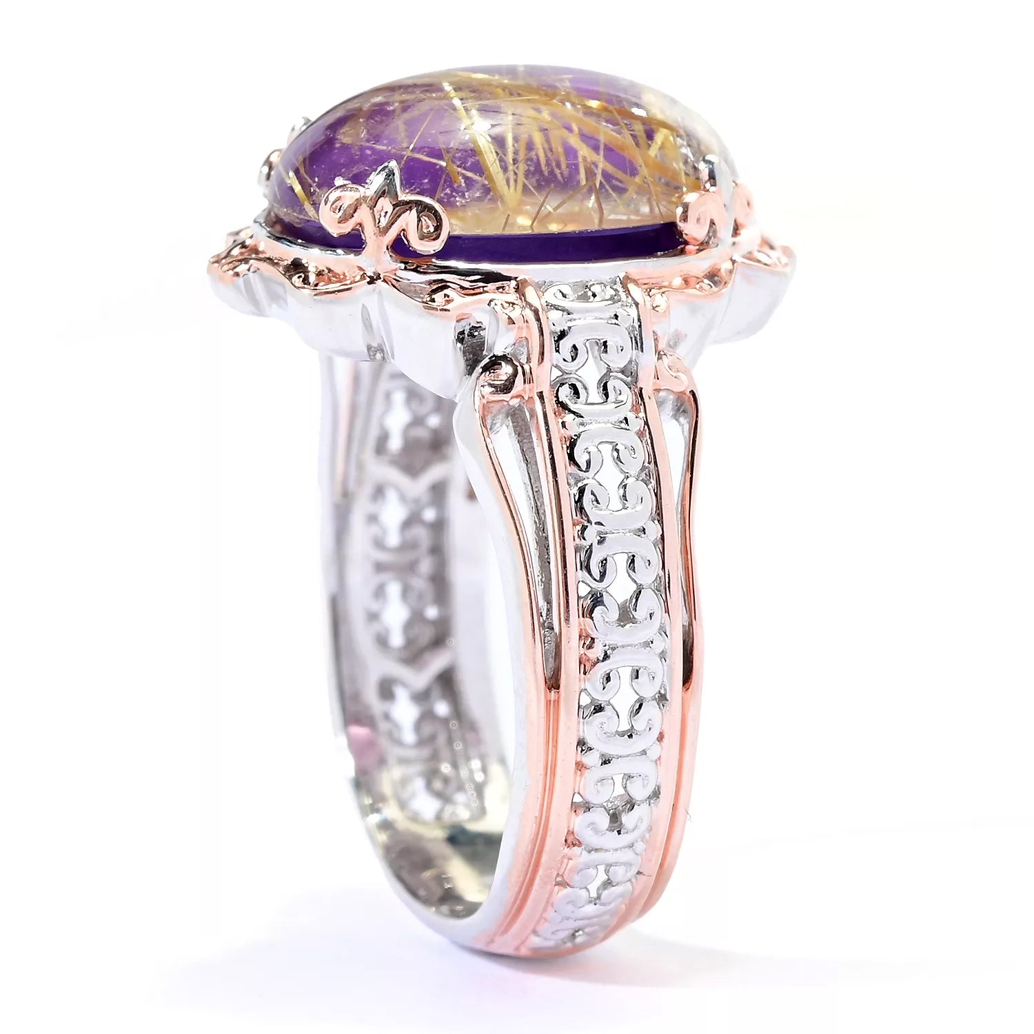 Gems en Vogue 24K Palladium Silver Hawk's Eye & Citrine Ring