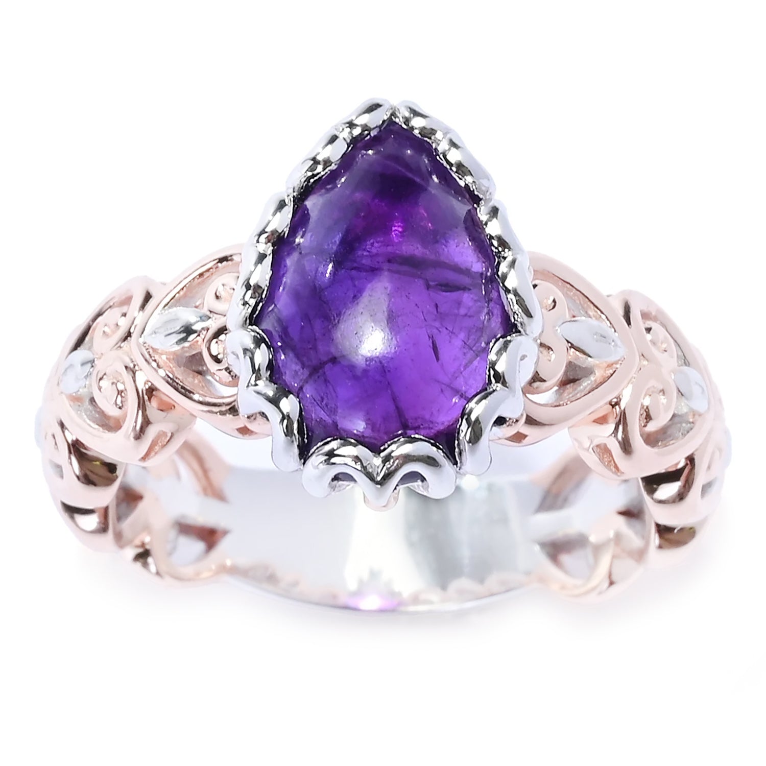 Gems en Vogue 18K Palladium Silver 4.03ctw Cushion Pink Amethyst & White Zircon Ring