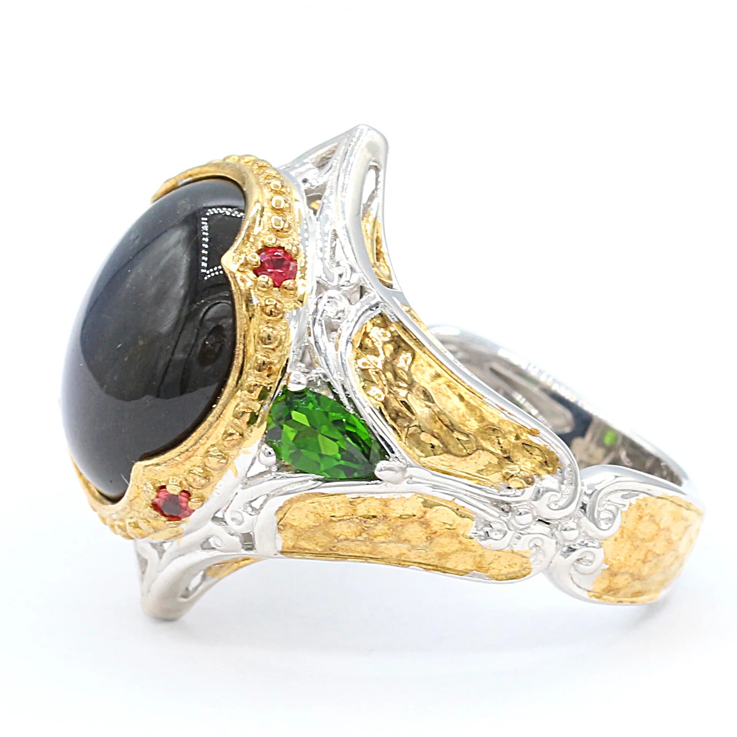 Gems en Vogue Labradorite Chrome Diopside & Orange Sapphire Ring Sale price$248.00 Regular price$495.00