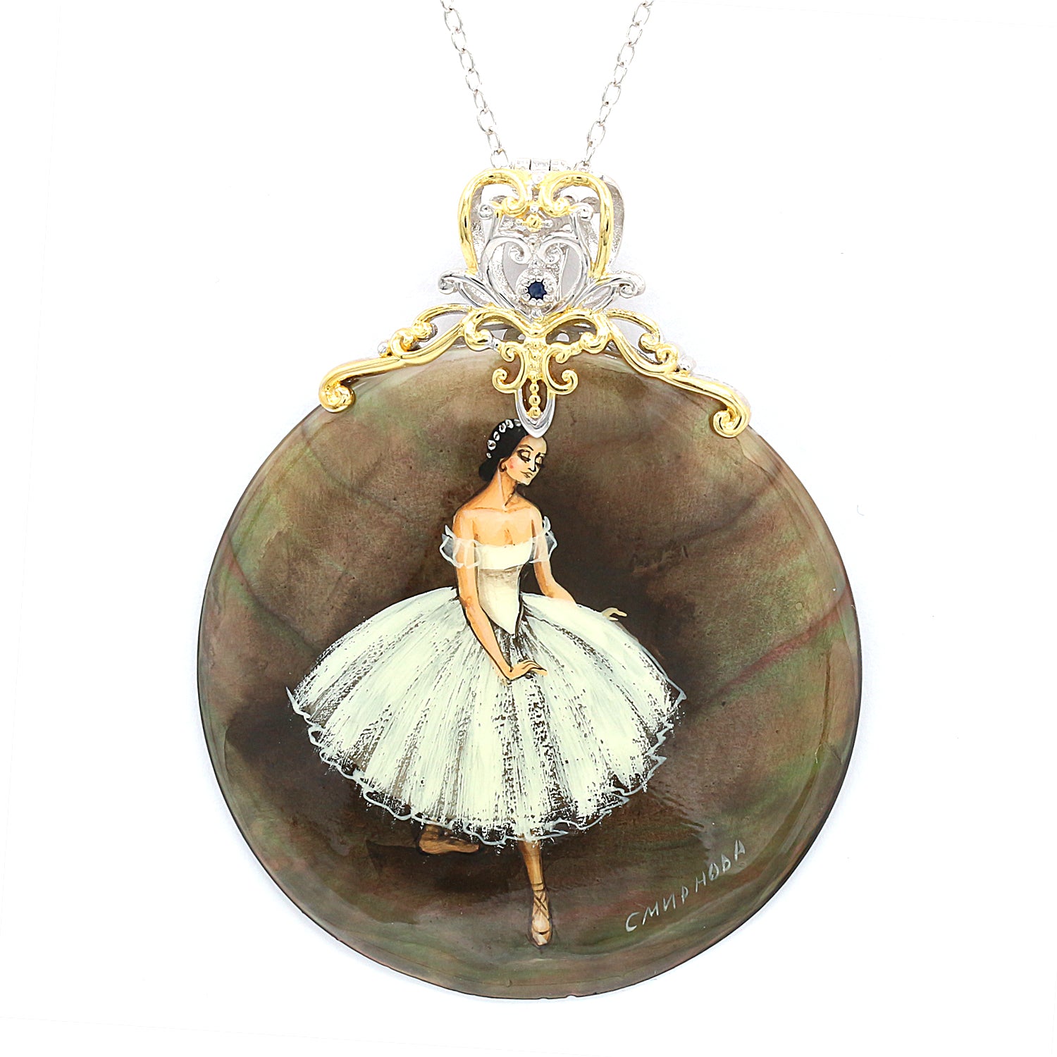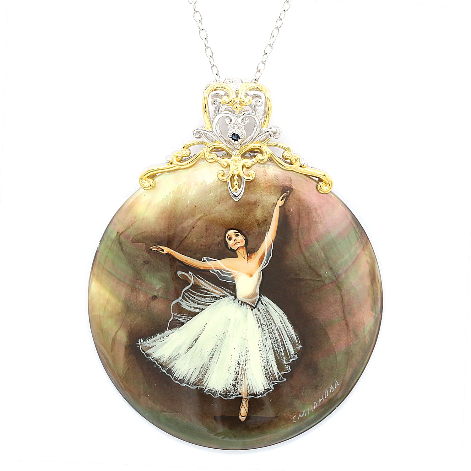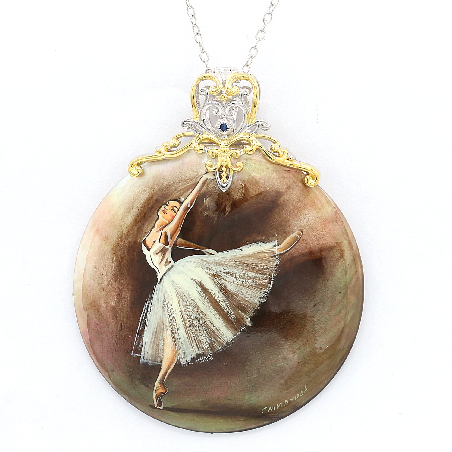 Gems en Vogue Hand-Painted Shell & Blue Sapphire Ballet Dancer Pendant