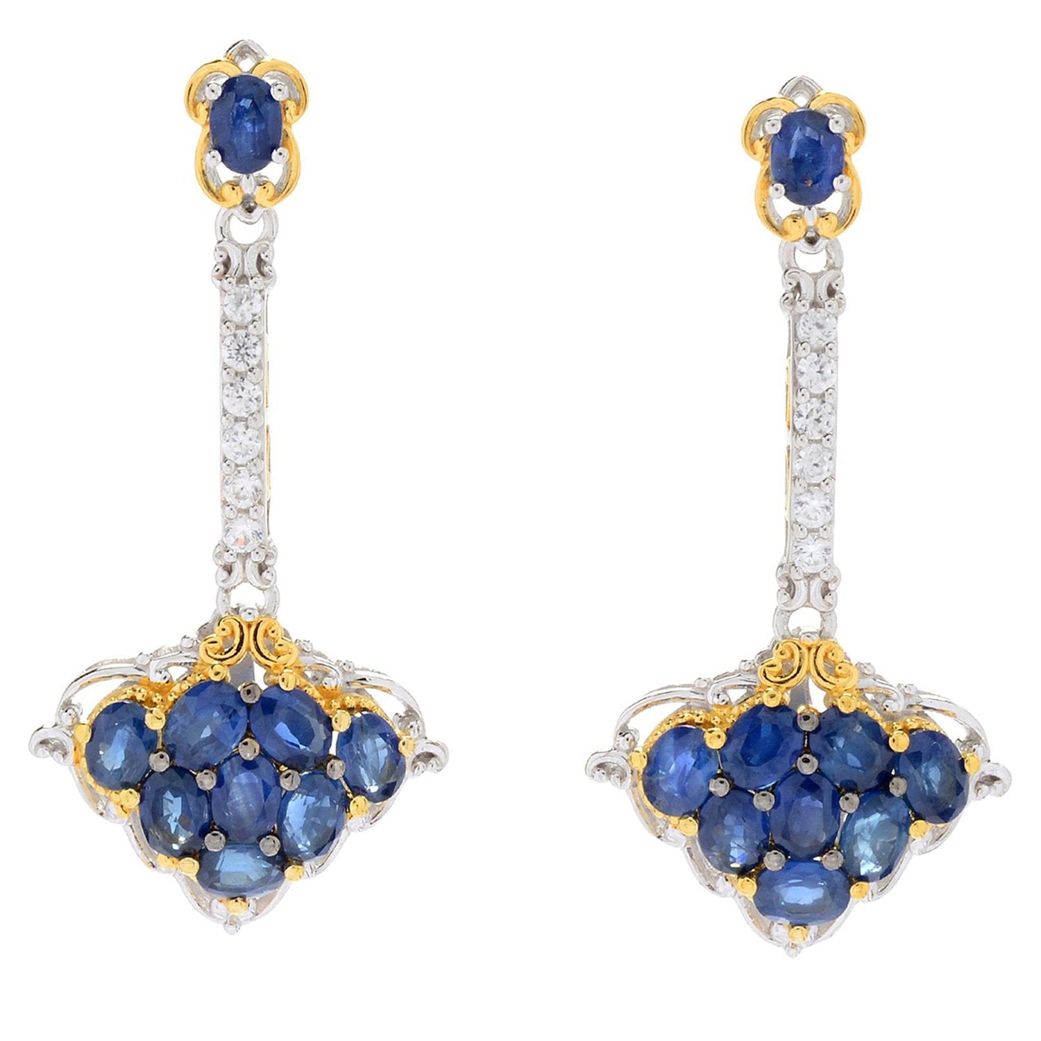 Gems en Vogue 4.83ctw Royal Blue Sapphire & White Zircon Dangle Earrings