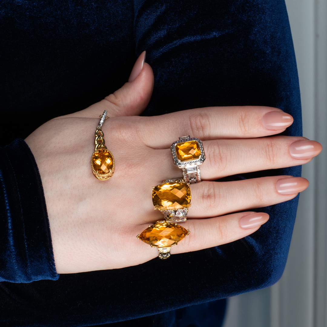Gems en Vogue’s award winning designs bring you inspired jewelry from notable art movements in history. Our distinctive masterpieces are set in our proprietary formula of sterling palladium alloy with 18K gold hand embraced accents. The collection features intricately designed pieces with premium exotic precious and semi-precious gemstones sourced worldwide.